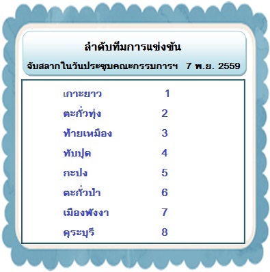 ► วันที่ 15 พ.ย. 59 ให้นักเรียน/ครูผู้ควบคุม ที่แข่งขันทุกกลุ่มสาระในภาคเช้าของสนามแข่งขันโรงเรียนอนุบาลพังงา ให้ไปพร้อมกันเวลา 07.45 น. ณ อาคารอเนกประสงค์ โรงเรียนอนุบาลพังงา เพื่อทำพิธีเปิดโดยพร้อมเพรียงกัน